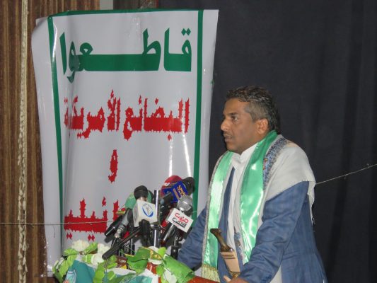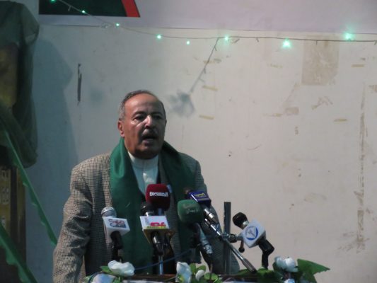 وقال” يجب أن يكون الشعب اليمني شعبا محمديا، كريما، مستمد قوته من سيرة النبي الكريم في مختلف المجالات “.. مستعرضا نبذة عن السيرة النبوية عليه أفضل الصلاة والسلام.