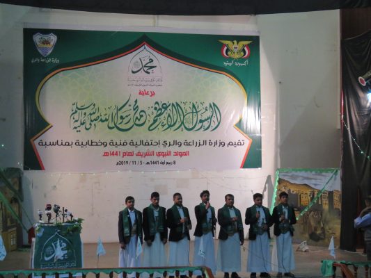وقدمت خلال الفعالية أناشيد دينية وفقرات فنية وقصيدة للشاعر معاذ الجنيد، استعرضت سيرته ومنهاجه عليه أفضل الصلاة وأتم التسليم، وجسدت قوة تمسك الشعب اليمني بالرسول الكريم وقوة ارتباطهم بمنهاجه وسنته.