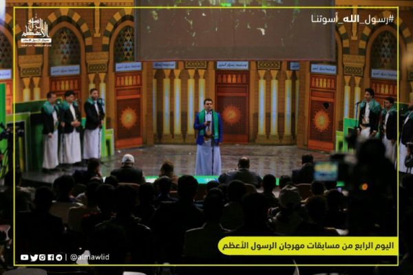 تتواصل منافسات مهرجان الرسول الأعظم للإبداع الفني والثقافي في دورته السادسة بأنشطته الصباحية بجامعة صنعاء والمسائية بمسرح الهواء الطلق.