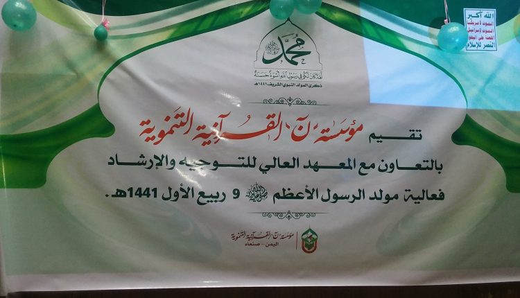 نظمت مؤسسة ن القرآنية التنموية بالتعاون مع المعهد العالي للتوجيه والإرشاد اليوم بصنعاء احتفائية بمناسبة ذكرى المولد النبوي الشريف.