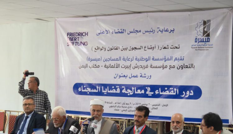 بدوره أوضح رئيس مؤسسة ميسرة الوطنية عبد السلام جدبان أن القضاء هو الضامن للسجناء لتمكينهم من حقوقهم القانونية.. مشيرا إلى أهمية الخروج بتوصيات تسهم في معالجة قضايا السجناء.