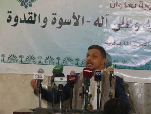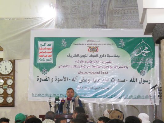 وفي الندوة التي حضرها القائم بـأعمال وزير السياحة أحمد العليي ووكيل وزارة الأوقاف العزي راجح، اعتبر نائب وزير الأوقاف والإرشاد فؤاد ناجي وممثل دائرة الثقافة القرآنية بالمكتب التنفيذي لأنصار الله محمد ابراهيم شرف الدين في ورقتي عمل لهما إحياء مناسبة المولد النبوي في بلد الايمان والحكمة في فعالية هي الأكبر رسالة إلى العالم أجمع تظهر الحكمة والإيمان الذي أخبر بهما الرسول عن الشعب اليمني.