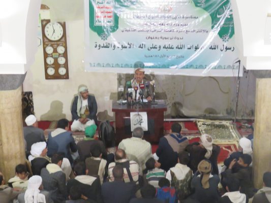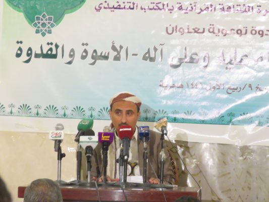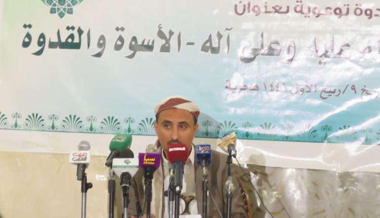 نظمت وزارة الأوقاف والإرشاد بالتنسيق مع دائرة الثقافة القرآنية بالمكتب التنفيذي مساء أمس بالجامع الكبير بصنعاء ندوة بعنوان “رسول الله صلوات الله عليه وعلى آله.. الأسوة الحسنة” بمناسبة المولد النبوي الشريف.
