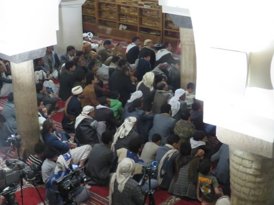 ودعا ناجي وشرف الدين إلى تعزيز المشاركة الواسعة في الفعالية المركزية بالعاصمة صنعاء السبت القادم .. منوهين إلى أنه لن يتخلف عنها سوى المشككين والمرتابين والمتخلفين عن نصرة الحق ومواجهة الباطل.