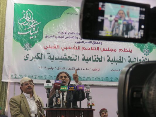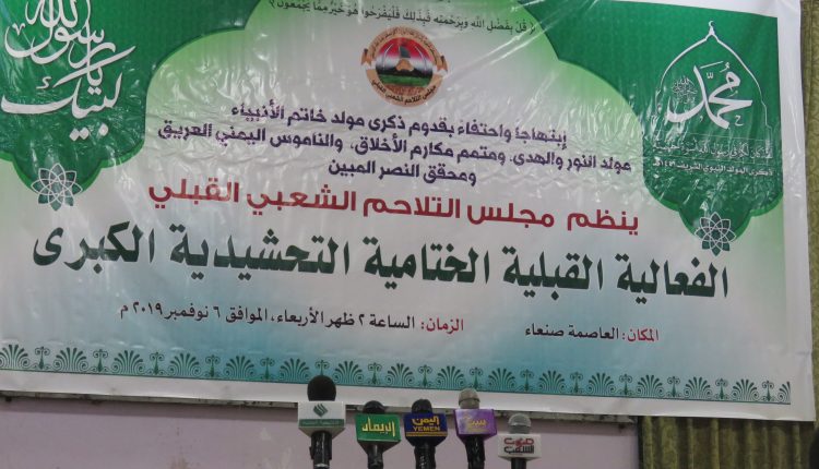 نظم مجلس التلاحم القبلي اليوم بصنعاء فعالية تحشيدية بذكرى المولد النبوي الشريف على صاحبه وآله أفضل الصلاة وأتم التسليم.