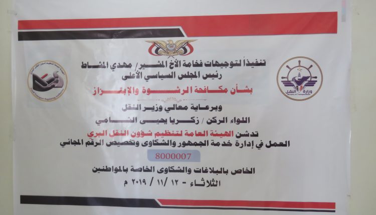 وأوضح الوادعي أن الهيئة عملت على تفعيل الرقم المجاني 8000007 بما يعزز من الشفافية والمصداقية بين الهيئة والمواطنين وتنفيذا لتوجيهات رئيس المجلس السياسي الأعلى لمكافحة الفساد المالي والإداري، وتسهيل انجاز معاملات المواطنين .. مبينا أنه تم تفعيل الموقع الالكتروني لاستقبال ومتابعة المعاملات الكترونيا، وتوفير دليل ولائحة توضح طبيعة خدمات الجمهور والمعاملات المنجزة وقيد الإنجاز.
