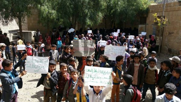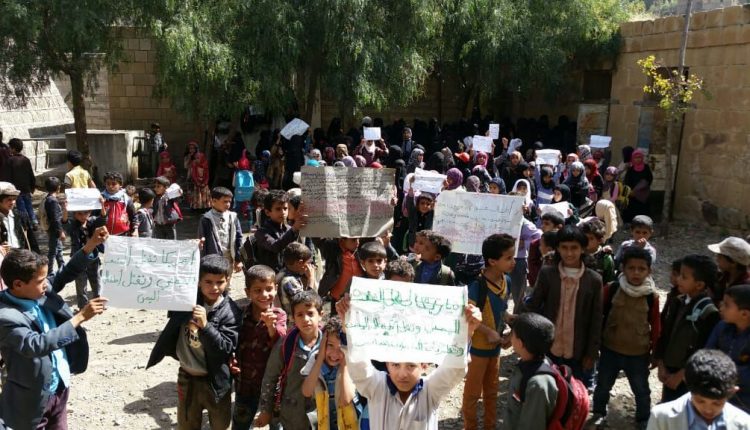 فقد واصلت اليوم الثلاثاء عدد من مدارس مديريات محافظة ذمار الوقفات الاحتجاجية المنددة بإستمرار الانتهاكات لحقوق أطفال اليمن التي تمارسها قوى العدوان السعودي الأمريكي.