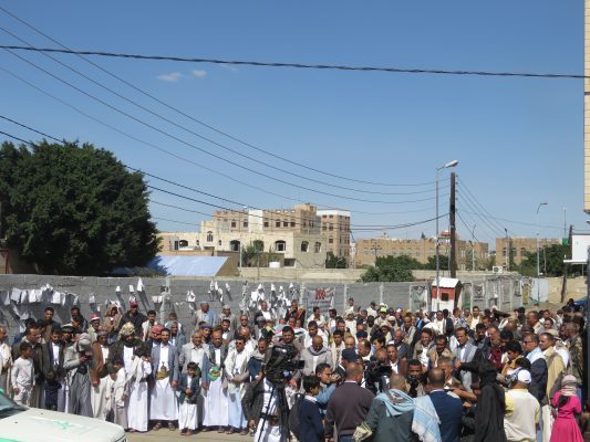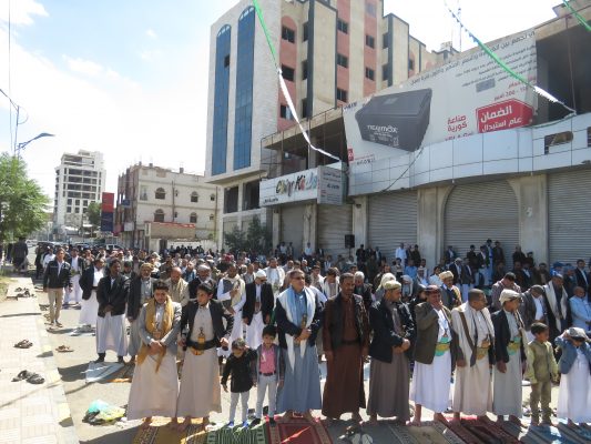 واكد البيان استمرار الاعتصام المفتوح أمام مكتب الامم المتحدة حتى يتم تلبية كافة مطالب المعتصمين المحقة والمشروعة وإطلاق كافة سفن المشتقات النفطية وتسهيل وصولها الى ميناء الحديدة وضمان عدم احتجازها مستقبلاً .
