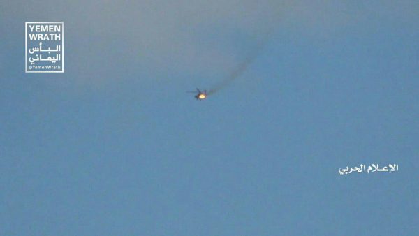 مشاهد لإسقاط طائرة أباتشي سعودية بصاروخ أرض جو في مجازة عسير