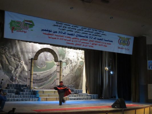 نظمت وزارة الثقافة بصنعاء ، اليوم الاحد، حفلاً خطابياً وفنيًا بمناسبة العيد الـ52 للاستقلال “الثلاثين من نوفمبر”.