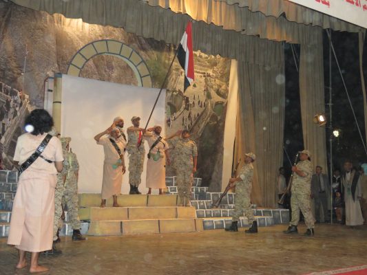 وشهد الحفل تقديم أوبريت “يمن النصر والصمود” للمؤلف والمخرج يحيى سهيل ومشاركة عدد من نجوم المسرح اليمني.