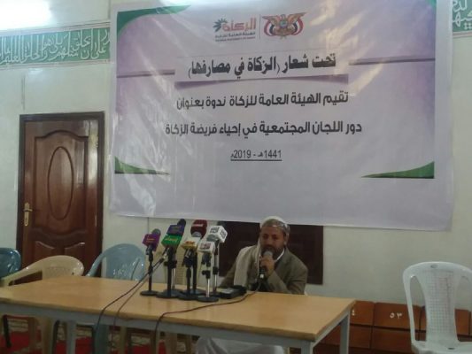 عٌقدت بصنعاء اليوم ندوة حول دور اللجان المجتمعية في إحياء فريضة الزكاة، نظمها مكتب الهيئة العامة للزكاة بأمانة العاصمة تحت شعار ” الزكاة في مصارفها”.