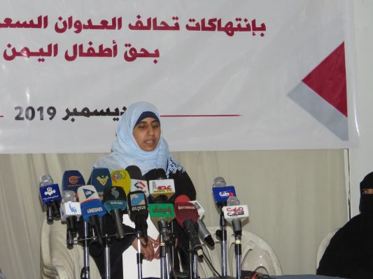 فيما استعرضت رئيسة منظمة انتصاف لحقوق المرأة والطفل سمية الطائفي ملخص للتقرير الخاص بانتهاكات تحالف العدوان السعودي الأمريكي بحق أطفال اليمن.