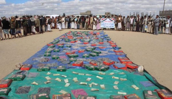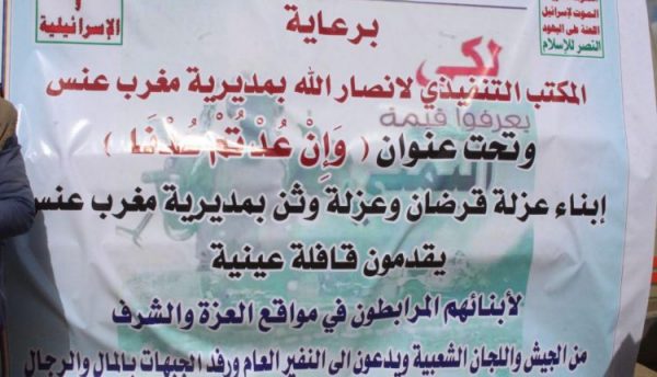 بالصــور: قافلة عينية ومالية من مديرية مغرب عنس بذمار الى جبهات القتال.