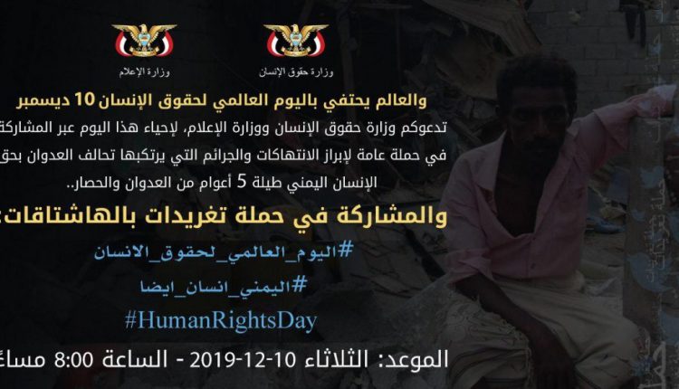 وأكد المنظمون على أهمية المشاركة في الحملة التي تأتي بالتزامن مع الاحتفال باليوم العالمي لحقوق الإنسان لكشف انتهاكات وجرائم تحالف العدوان بحق الإنسان اليمني على مدى خمسة أعوام من العدوان والحصار.