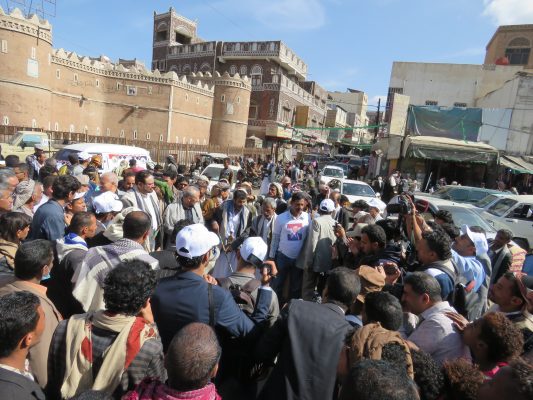 وانطلقت الحملة من ساحة باب اليمن بمشاركة واسعة من مختلف شرائح المجتمع والمجالس المحلية والمكاتب التنفيذية والمديريات ومنظمات مجتمع المدني والمبادرات، وفرق مركز التوعية البيئية بصندوق النظافة بالأمانة.