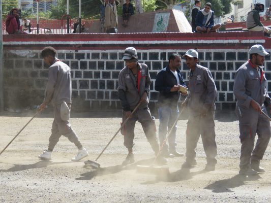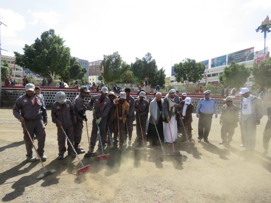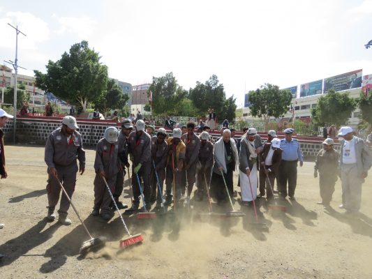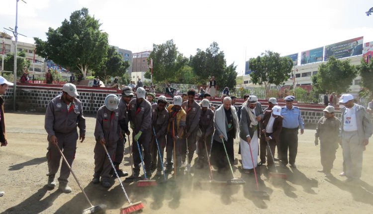 حيث شارك نائب رئيس الوزراء الجنيد، وأمين العاصمة عُباد في أعمال النظافة بميدان التحرير بالأمانة.