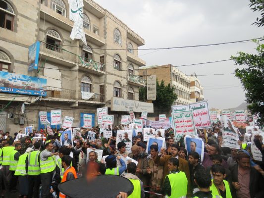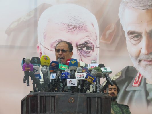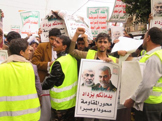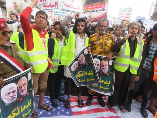 خرجت بالعاصمة صنعاء عصر اليوم  مسيرة جماهيرية حاشدة إدانة للجريمة التي ارتكبها العدو الامريكي باستهداف القائدين الكبيرين قاسم سليماني وابو مهدي المهندس. .