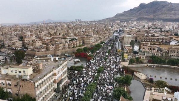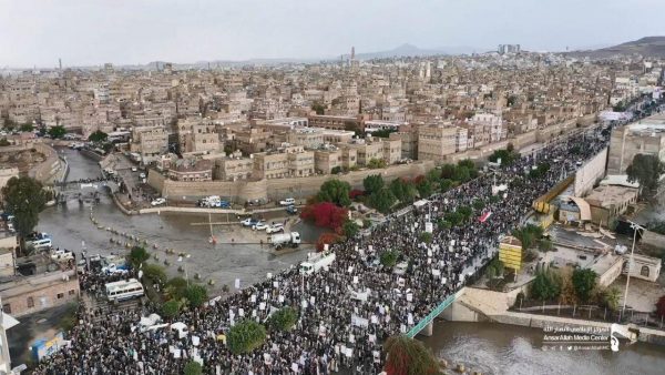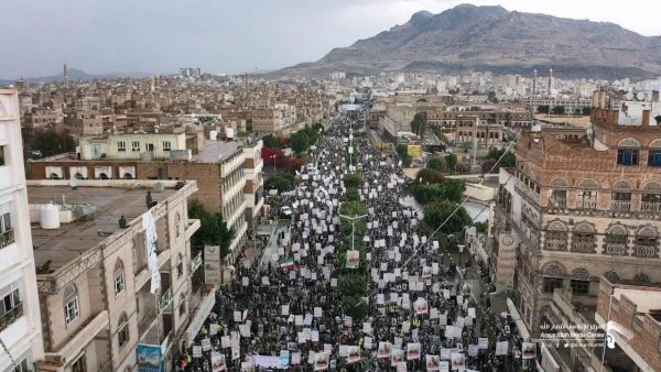 بالصــور : مظاهرة حاشدة بالعاصمة صنعاء إدانة لاستهداف العدو الأمريكي للقائدين سليماني والمهندس