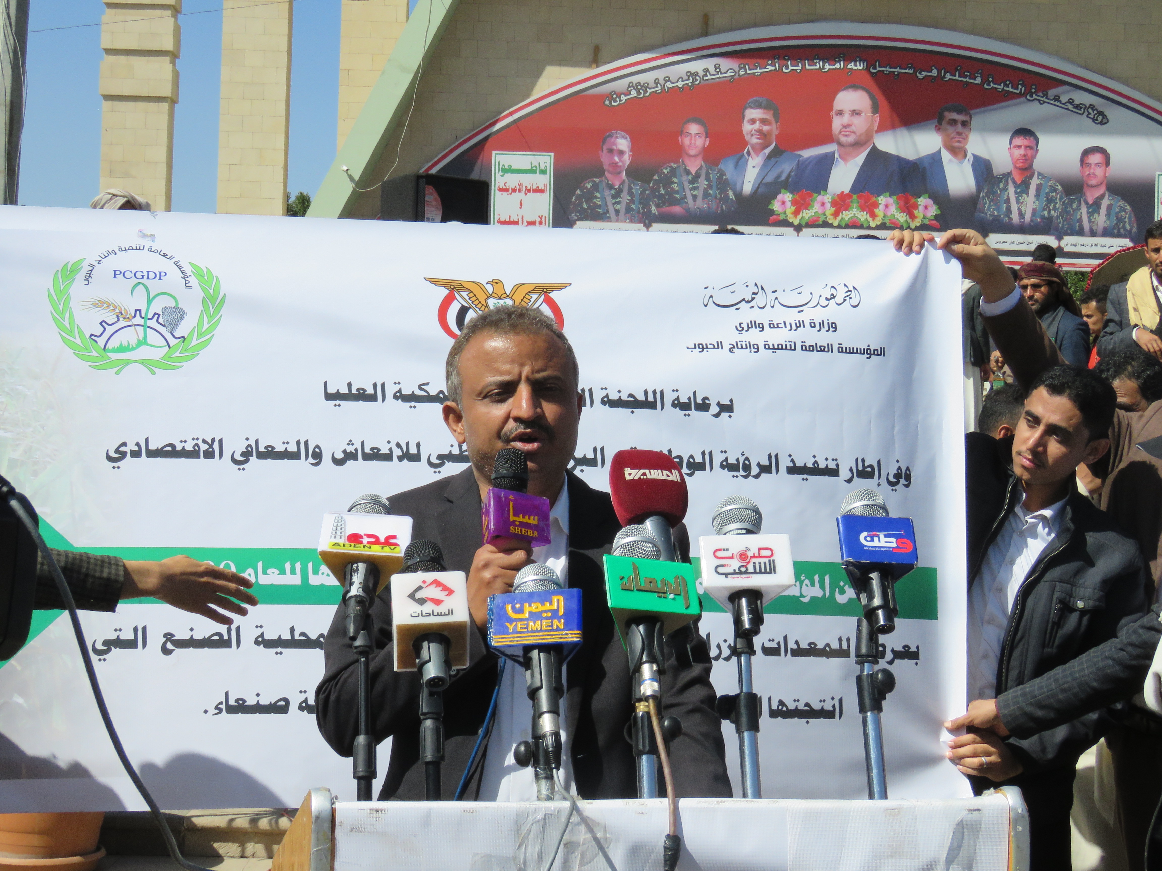 وتطرق إلى أن خطة المؤسسة تترجم توجهات الدولة في التوسع بزراعة محاصيل الحبوب الغذائية وصولا إلى تحقيق نسب ايجابية في مجال الأمن الغذائي باليمن والإسهام في التخفيف من معاناة المزارعين نتيجة الأوضاع التي يشهدها اليمن جراء العدوان والحصار .
