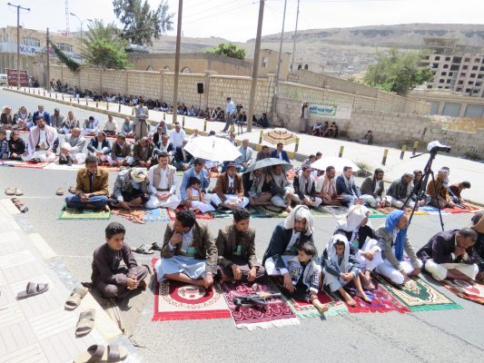للجمعة الـ46 تواصل الاحتجاجات المطالبة بإطلاق سفن النفط امام مكتب الامم المتحدة بصنعاء