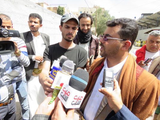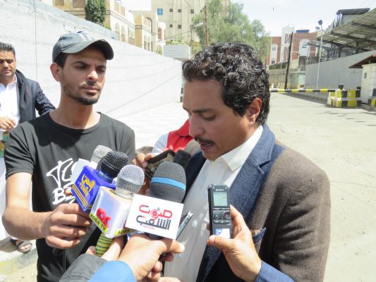 فيما أكد البيان الصادر عن اللجان النقابية استمرار الاعتصام المفتوح ، وتنظيم الوقفات الاحتجاجية امام مكتب الامم المتحدة حتى يتم تلبية مطالب المعتصمين ، وإطلاق كافة السفن النفطية المحتجزة لدى تحالف العدوان .