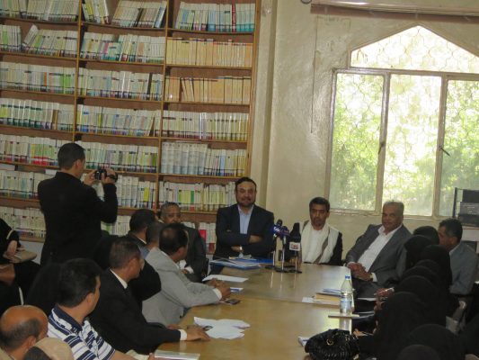 ناقش لقاء بصنعاء اليوم برئاسة أمين العاصمة حمود عُباد أنشطة جهاز محو الأمية وتعليم الكبار والصعوبات التي توجهه وسبل معالجتها وتوفير الاحتياجات اللازمة له.