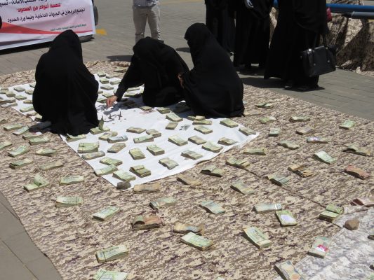 بالصـــور: الهيئة النسائية بأمانة العاصمة تقدم قافلة مالية للمرابطين في الجبهات