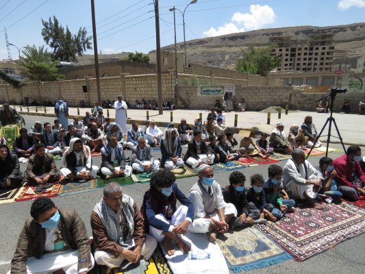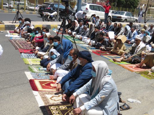 نظم موظفو شركة النفط اليمنية والنقابات والهيئات التابعة لها ، وجمع غفير من المواطنين،  اليوم وقفة إحتجاجية ، أمام مكتب الامم المتحدة بصنعاء عقب صلاة الجمعة الـ “51 ” بعنوان ” الامم المتحدة وباء فتاك ” .