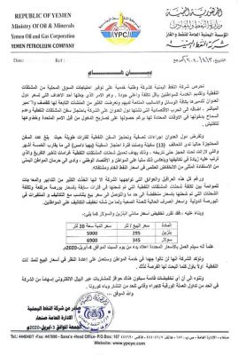 الاخبار شركة النفط تعلن عن تخفيض سعر مادتي البترول والديزل في أبريل 3, 2020 أعلنت شركة النفط اليمنية عن تخفيض سعر بيع مادتي البترول والديزل ابتداء من السبت المقبل. وفيما يلي نص البيان:- شارك