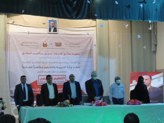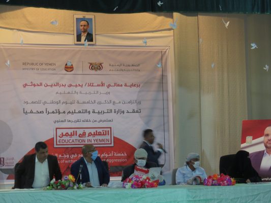 اضافة الى ذلك اشهرت وزارة التربية والتعليم في المؤتمر الصحفي الذي عقدته اليوم بصنعاء تقريرها السنوي ” التعليم في اليمن خمسة اعوام من الصمود في وجه العدوان “.