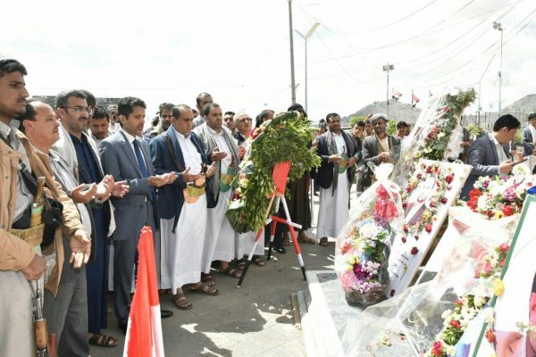 وقرأ حامد وشرف الدين الفاتحة على أرواح الرئيس الشهيد الصماد ورفاقه وكافة شهداء الوطن الذين سطروا بدمائهم الزكية ملاحم بطولية في الدفاع عن الوطن وأمنه واستقراره.