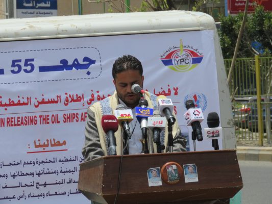 فيما أكد البيان الصادر عن الوقفة إستمرار الاعتصام المفتوح والوقفات الاحتجاجية التي ينظمها موظفي شركة النفط اليمنية منذ ” 385 ” يوماً أمام مكتب الامم المتحدة بصنعاء ، حتى يتم تلبية كافة مطالب المعتصمين المحقة والمشروعة ، وإطلاق سفن النفط المحتجزة وضمان عدم إحتجازها مستقبلاً.