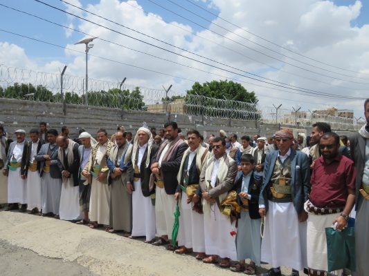 بالصــور: للجمعة الـ55 تواصل الاحتجاجات المطالبة بإطلاق سفن النفط أمام مكتب الامم المتحدة بصنعاء