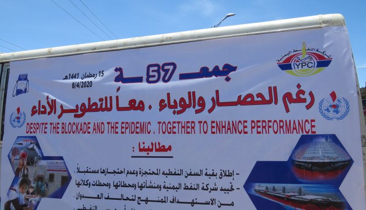 بالصــور : في الجمعة 57 شركة النفط اليمنية تحمل الأمم المتحدة مسؤولية توقف الخدمات الأساسية في ظل جائحة كورونا