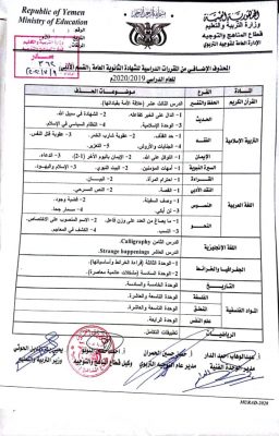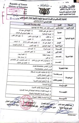 وأكد نائب وزير التربية والتعليم رئيس اللجنة العليا للإختبارات الدكتور همدان الشامي في تصريح لوكالة الأنباء اليمنية (سبأ) حرص الوزارة على مستقبل الطلاب وتحصيلهم العلمي.. مضيفاً ” من هذا المنطلق ونظراً للظروف الاستثنائية التي فرضتها جائحة فيروس كورونا قامت الوزارة بحذف عدد من الموضوعات بحيث لا تدخل ضمن أسئلة الاختبارات “.