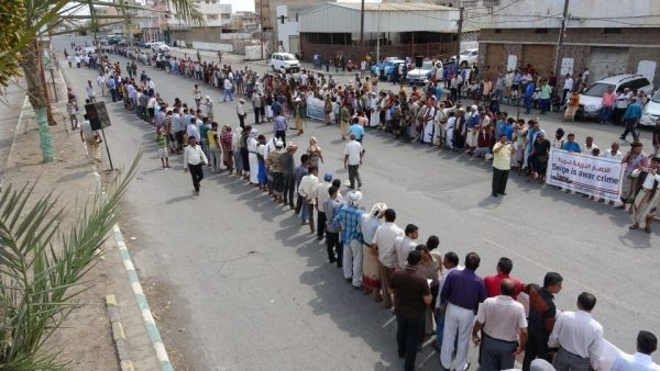 وأستنكر بيان صادر عن الوقفة الاحتجاجية الحاشدة المسلحة تلاه نائب مدير عام الهيئة العامة للبريد منطقة الحديدة حسين حبيب تعمد طيران العدوان استهداف منازل المواطن في وشحة بحجة والمساعفة بالجوف وكذا الجريمة التي ارتكبتها مليشيا حزب الإصلاح بحق آل سبيعيان بوادي عبيدة محافظة مأرب واستمرار الصمت الدولي إزاء جرائم العدوان بحق الشعب اليمني منذ ست سنوات.