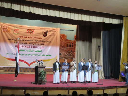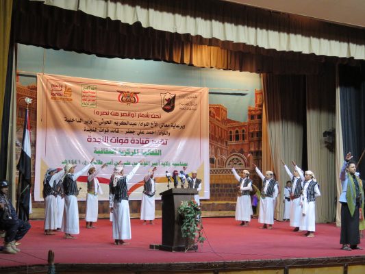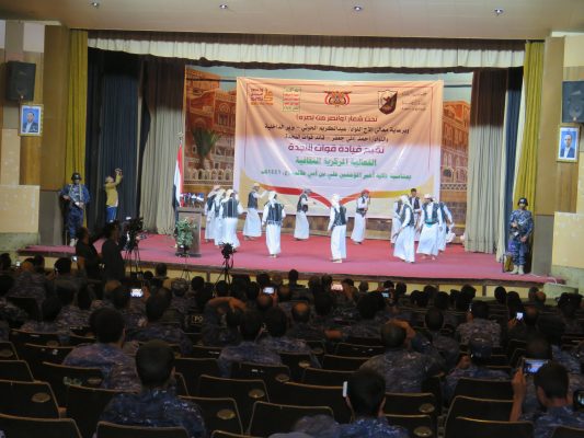 تخلل الفعالية التي حضرها مدير عام أمن العاصمة العميد معمر هراش وقيادات من قوات النجدة قصيدة للشاعر معاذ الجنيد وعدد من الرقصات الفلكلورية والاسكتشات الفنية المعبرة.