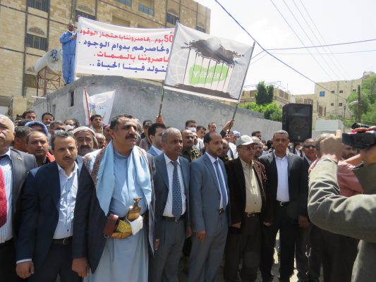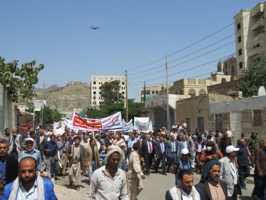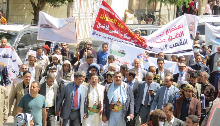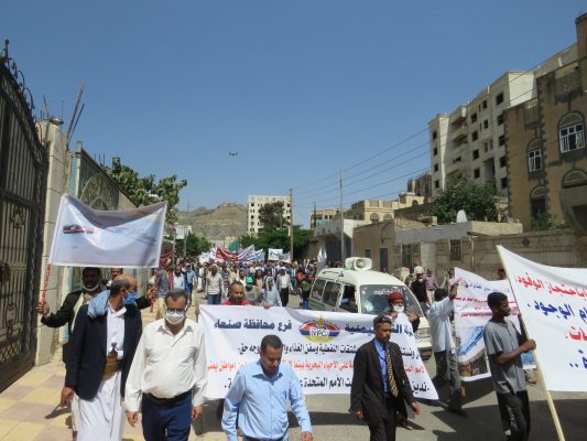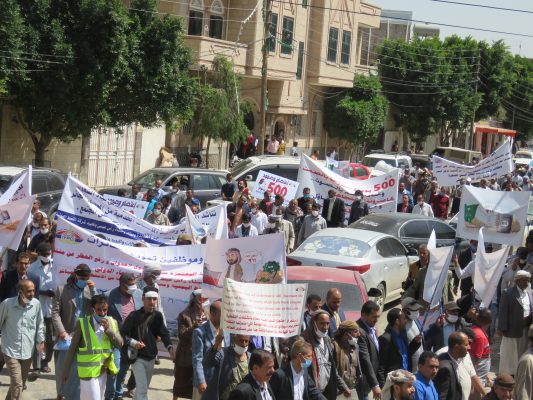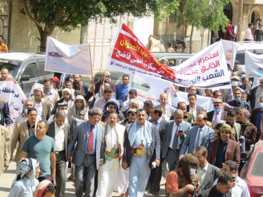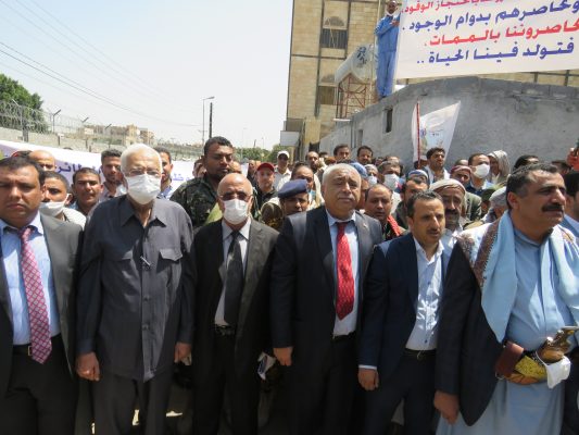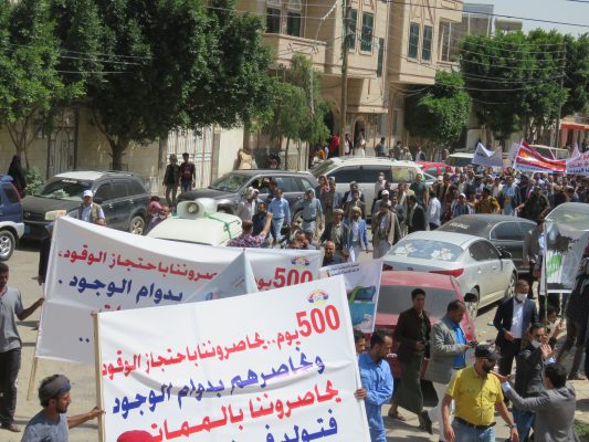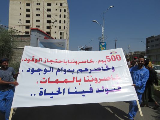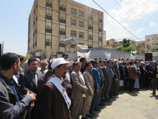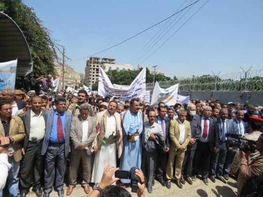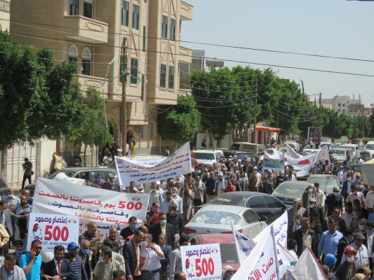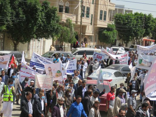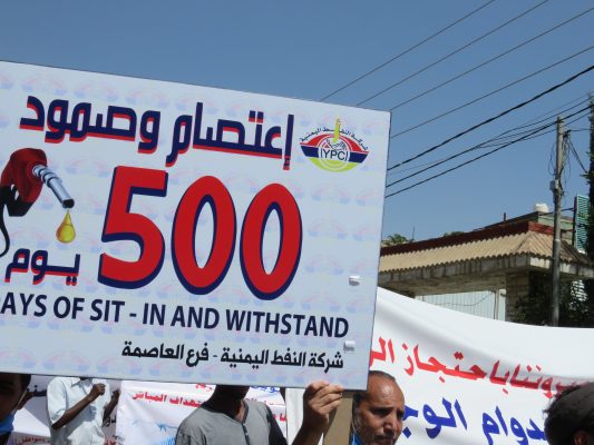 بالصــور: مسيرة ووقفة كبرى لشركة النفط اليمنية امام مكتب الامم المتحدة بمرور 500 يوم من الاعتصام المفتوح