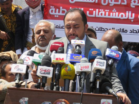 فيما أعلن الناطق الرسمي باسم وزارة الصحة يوسف الحاضري أن القطاع الصحي أصبح على شفى انهيار تام بمختلف مرافقه في حال لم يتم السماح لسفن المشتقات النفطية بالدخول إلى ميناء الحديدة .
