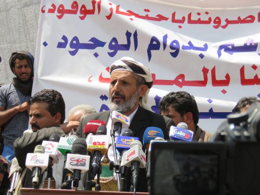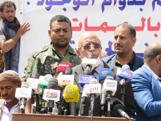 من جانبه أكد رئيس مجلس التلاحم القبلي الشيخ ضيف الله رسام، أن قبائل اليمن تدين ما تقوم به دول العدوان من قرصنة بحرية ومحاولاتها للنيل من الشعب اليمني .. مطالبا الأمم المتحدة القيام بدورها للسماح بدخول سفن المشتقات النفطية.