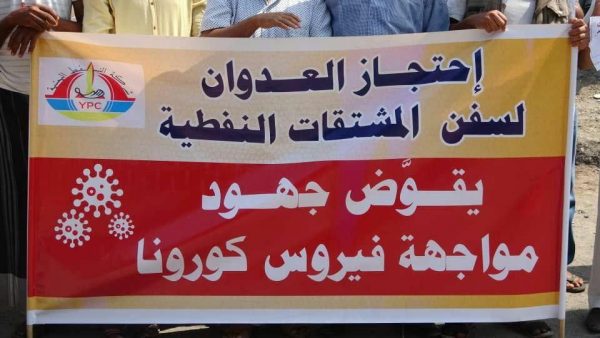 وقفة احتجاجية أمام مكتب الأمم المتحدة بالحديدة للتنديد باحتجاز المشتقات النفطية