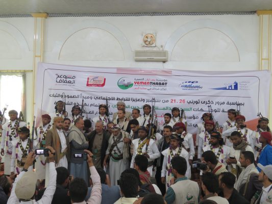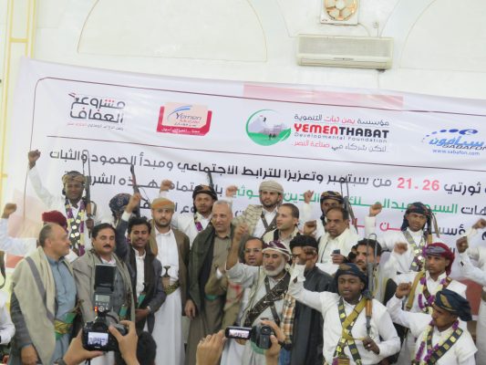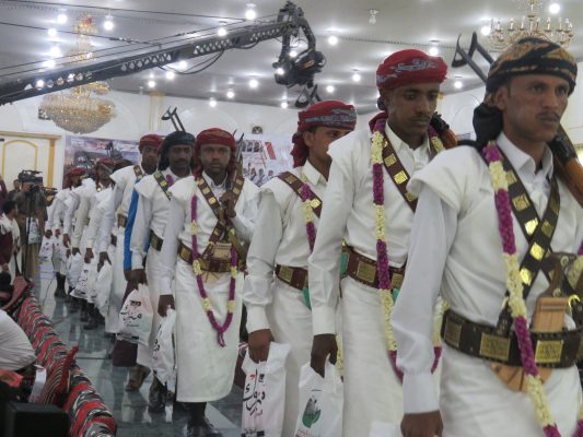 بالصــور:مؤسسة يمن ثبات التنموية تحتفي بزفاف 37 عريساً من أحفاد بلال المرابطين في الجبهات