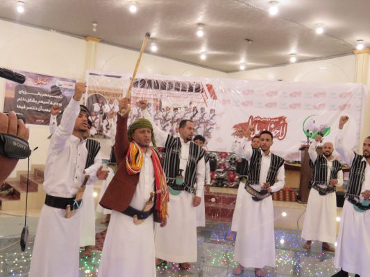 وأكد عضو السياسي الأعلى الحوثي أن الأعراس الجماعية والاحتفالات رسالة لقوى العدوان بصمود اليمنيين وثباتهم في وجه العدوان وجرائمه .. مشيداً بالبطولات التي يسطرها أحفاد بلال في معركة الدفاع عن الوطن في مختلف الجبهات.