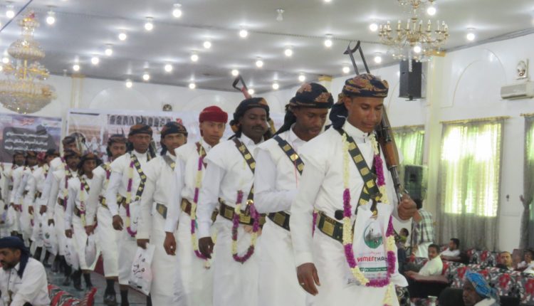 بالصــور:مؤسسة يمن ثبات التنموية تحتفي بزفاف 37 عريساً من أحفاد بلال المرابطين في الجبهات