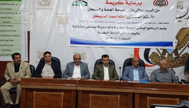 من جهته أشار وكيل وزارة الصحة لقطاع الرعاية الدكتور محمد المنصور إلى أهمية اليوم العالمي للصحة النفسية في تقييم الوضع في هذا المجال، سيما في ظل التحديات واستمرار العدوان والحصار وتوقف المرتبات.