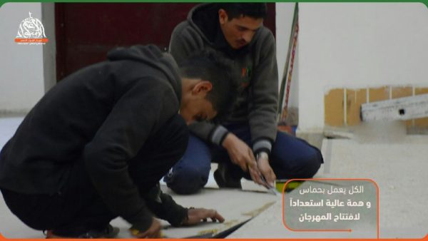 وعكفت اللجان على العمل لأيام بوتيرة عالية لتجهيز القاعات التي تحتضن فعاليات ومسابقات المهرجان على مدى أسبوعين تنطلق بدءاً من غدا