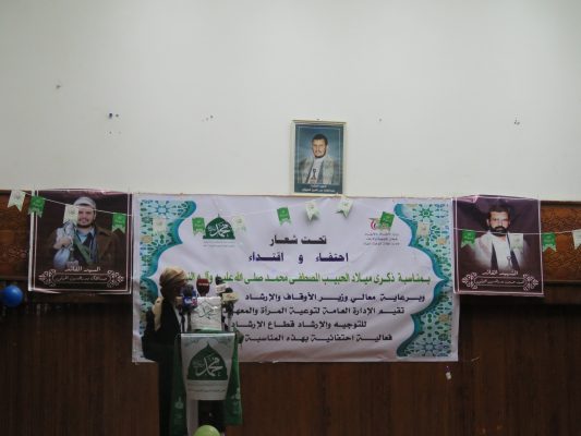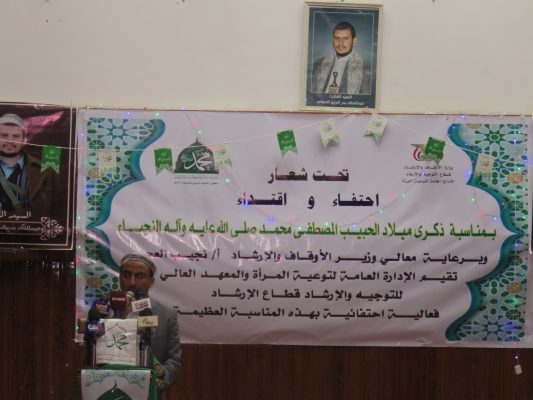 وفي الفعالية أشار نائب وزير الأوقاف والإرشاد العلامة فؤاد محمد ناجي إلى أن الاحتفال بذكرى المولد النبوي، يعبر عن عظمة الرسول الكريم صلى الله عليه وآله وسلم وما يحتله من مكانة في قلوب ووجدان اليمنيين.