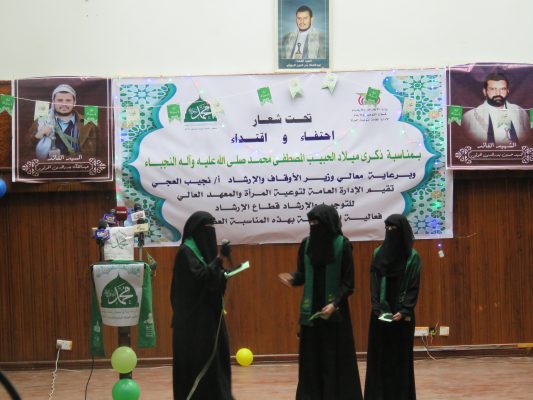 ولفت إلى أن الاحتفال بهذه المناسبة الدينية الجليلة، يعكس مدى ارتباط المرأة اليمنية بنبيها واقتدائها بما انتهجه من شمائل وسنن فاضلة .. منوها بدور المرأة اليمنية ومساهمتها في دعم الجبهات وتعزيز صمود المرابطين في الدفاع عن الأرض والعرض والسيادة الوطنية.