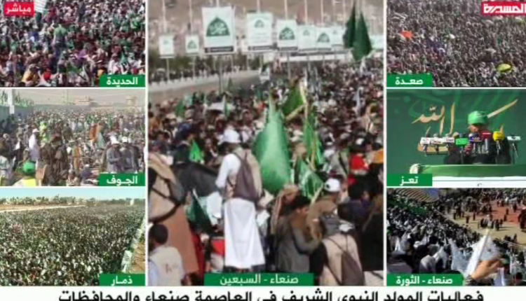 امتلأت الساحات المعدة لفعاليات المولد النبوي الشريف بالمشاركين في 15 ساحة كبرى بالعاصمة صنعاء وبقية المحافظات..